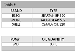 Loại dầu tra và thể tích dầu tra cần tham khảo theo bảng F sau đây