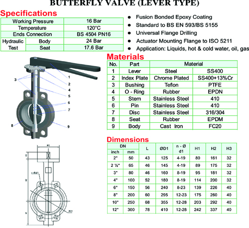 1. THÔNG SỐ KĨ THUẬT VAN BƯỚM TAY GẠT TẠI CƠ ĐIỆN LANH ERIKO CUNG ỨNG VAN HÀN QUỐC