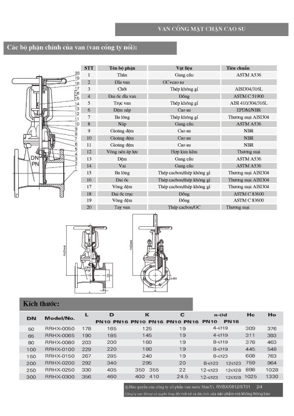 Van cổng mặt chặn cao su có đĩa van được gắn ốc cố định và bọc kín bằng cao su EPDM. Với tính năng vận hành nhẹ nhàng, êm ái, chống ăn mòn, độ đàn hồi tốt và tuổi thọ cao, van được sử dụng rộng rãi trong tất cả các công trình cấp thoát nước. Van có chức năng PCCC như một van đóng.