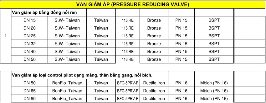 Bảng giá van giảm áp Unik, van tràn ngập, van báo động Unik