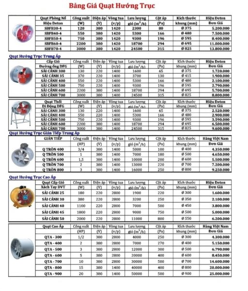 Bảng giá quạt thông gió công nghiệp Deton.
