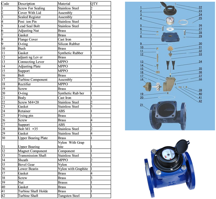 - Đồng hồ lưu lượng được chế tạo bằng vật liệu gang có độ bền cao, mặt đồng hồ được làm bằng kính chịu lực có lắp bảo vệ, lớp vỏ được phủ bằng 1 lớp sơn xanh Epoxy tránh bị ô xy hóa trong quá trình lắp đặt và làm việc.