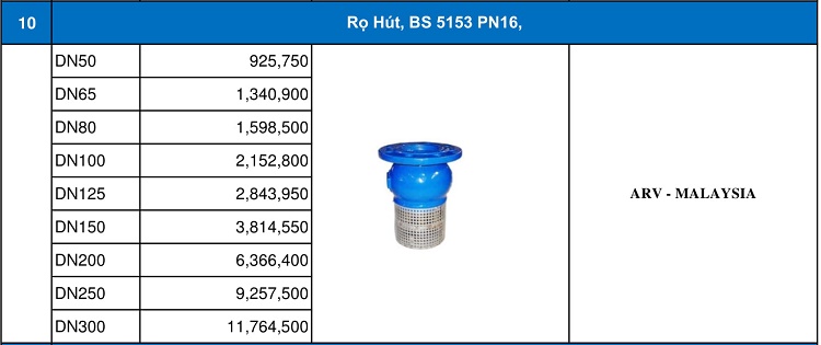Bảng giá rọ hút ARV.