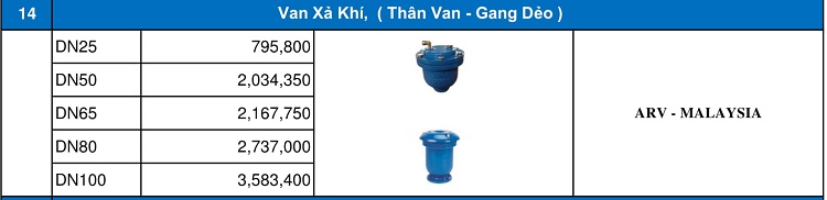 Bảng giá Van xả khí ARV.