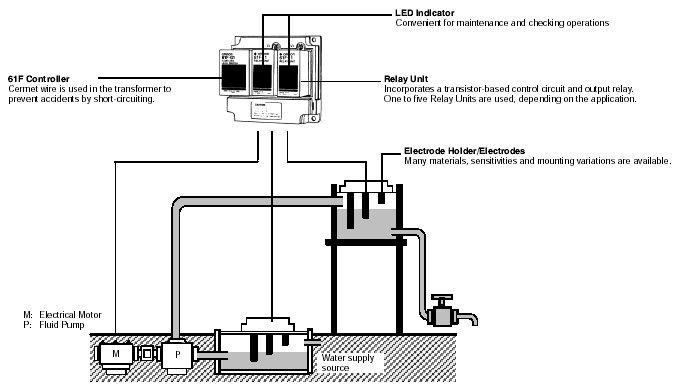 -Omron 61F-G-AP có khả năng điều khiển cấp nước tự động, chống bơm chạy không tải và thích hợp để kiểm tra mức của bất kỳ chất lỏng dẫn điện nào
