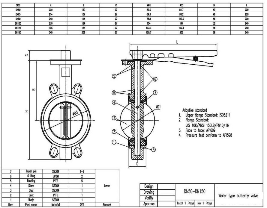 Mô tả thông số kỹ thuật van bướm tay gạt