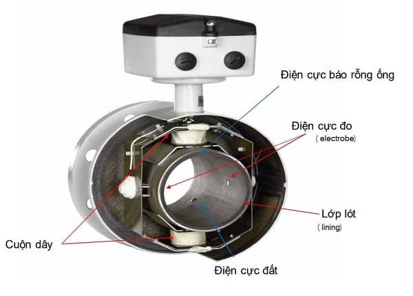 -Lớp lót: Được làm từ chất liệu PTFE (Teflon) hoặc FEP, được đặt bên trong thân đồng hồ, có khả năng cách điện cũng như chống ăn mòn tuyệt đối. Đây là bộ phận tiếp xúc trực tiếp với lưu lượng dòng chảy, có nhiệm vụ ngăn điện thế cảm ứng bị đoản mạch do chất liệu thân đồng hồ được làm bằng inox gây ra