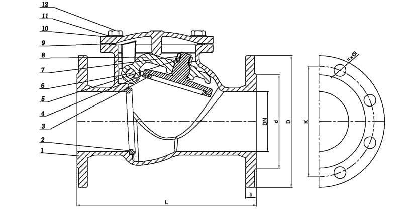 -Khi không có dòng lưu chất được bơm vào hệ thống, đĩa van sẽ nằm ở vị trí chắn lại cửa van.